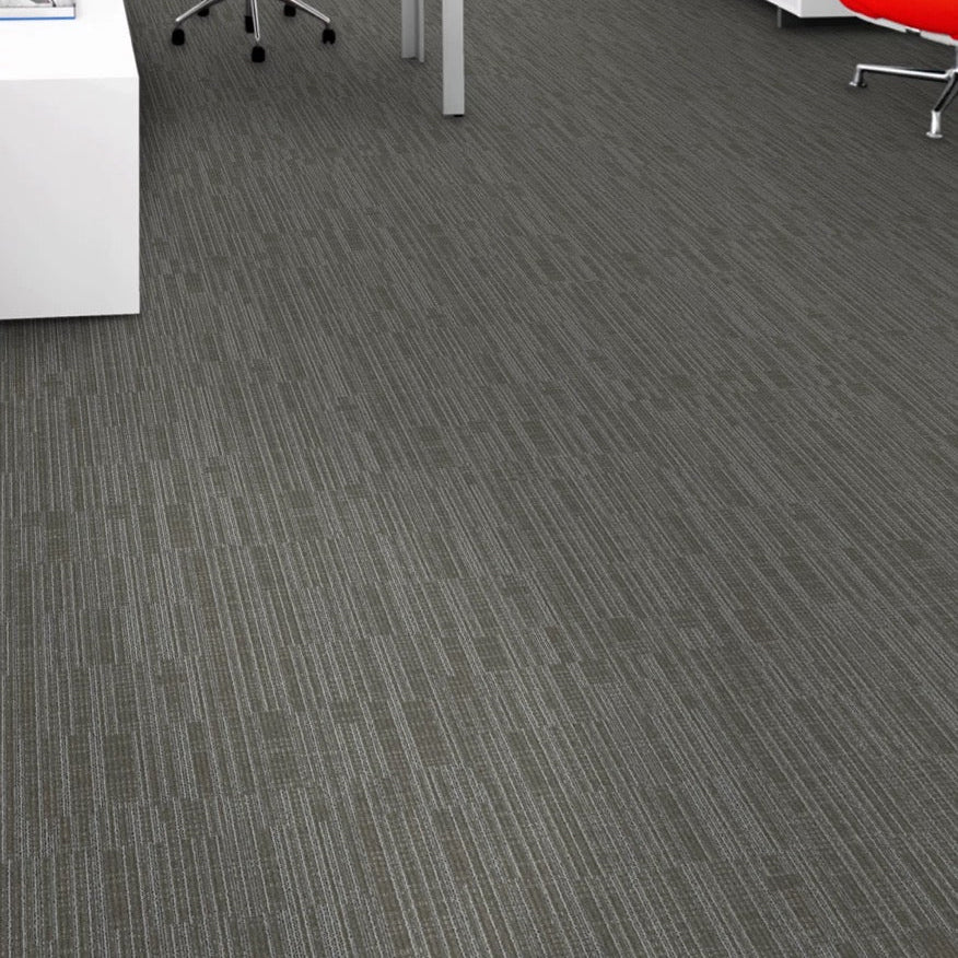 Aladdin Commercial Get Moving Tile in Titanium will be a perfect fit for startup founders, retail managers, and modern office designers who want a sleek, contemporary look with maximum flexibility. This "Titanium" grey carpet tile allows business owners to create a modern aesthetic that matches almost any furniture or branding. The modular design means if a spill happens in the breakroom or a tile gets worn near a desk, you can swap it out instantly without calling a professional. No matter if it's a collaborative workspace or a customer-facing showroom, Get Moving Tiles help you keep your business environment flexible and looking sharp with minimal maintenance.