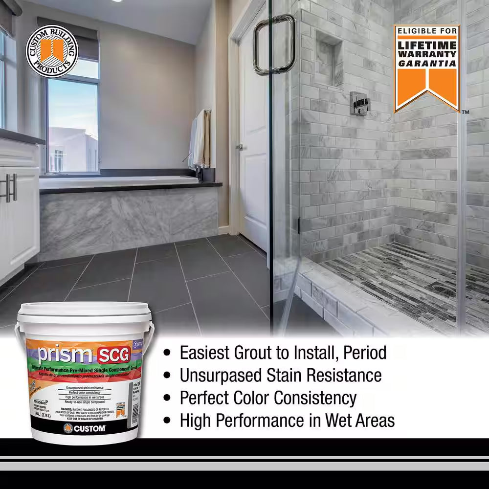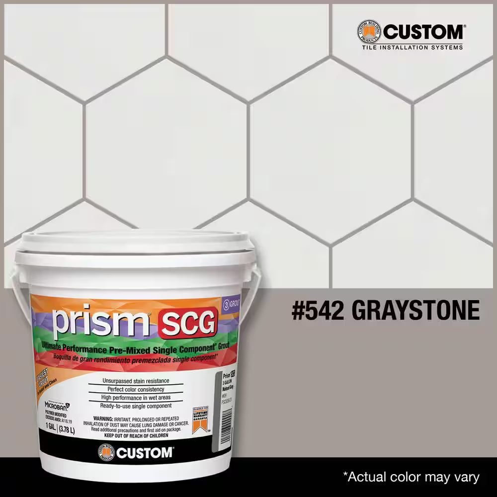Prism SCG Ultimate Performance Pre-Mixed Grout from Custom Building Products is a high-performance single-component grout designed for professional tile installations. This ready-to-use formula eliminates the need for mixing and helps ensure consistent color and reliable results for a variety of tile projects. The Graystone color provides a modern neutral tone that pairs well with many tile styles and finishes.