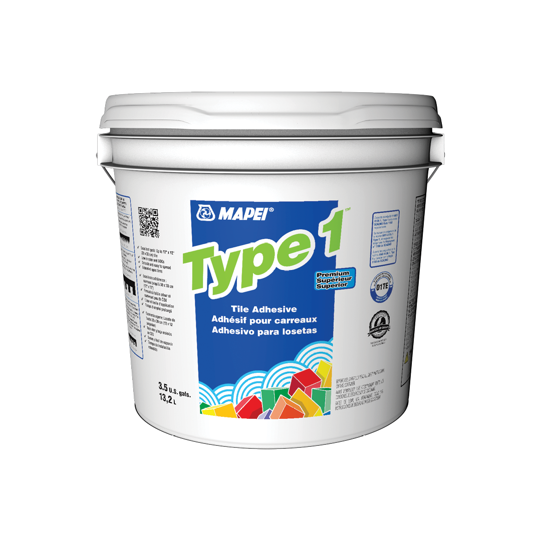 Mapei Type 1 3.5 Gallon Premium Tile Adhesive is a professional-grade acrylic adhesive designed for installing ceramic and porcelain tile in interior applications. This traditional nonflammable adhesive provides reliable bonding performance for both glazed and unglazed tiles on properly prepared walls, floors, and countertops.