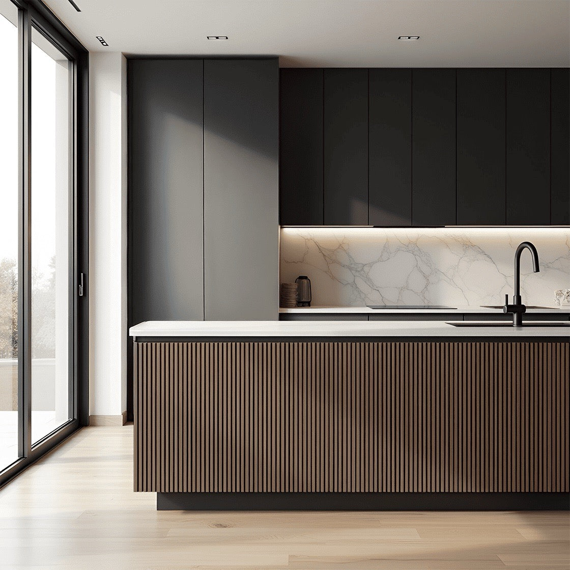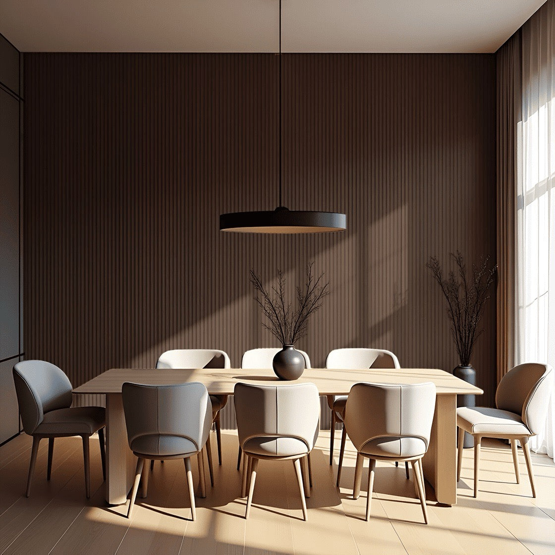 Transform your interior spaces with the Nroro Chocolate Walnut 34A slat panel from the Ridge5 Collection. These sophisticated PVC wall and ceiling panels deliver contemporary design with authentic wood aesthetics, combining durability with elegant style. The rich chocolate walnut finish complements modern and transitional décor seamlessly. Engineered for easy installation and maintenance, these decorative accents resist moisture and wear, making them ideal for kitchens, bathrooms, and living areas. Create visual depth and architectural interest while enjoying the practical benefits of premium PVC construction. Elevate your home's aesthetic with timeless appeal and lasting performance.