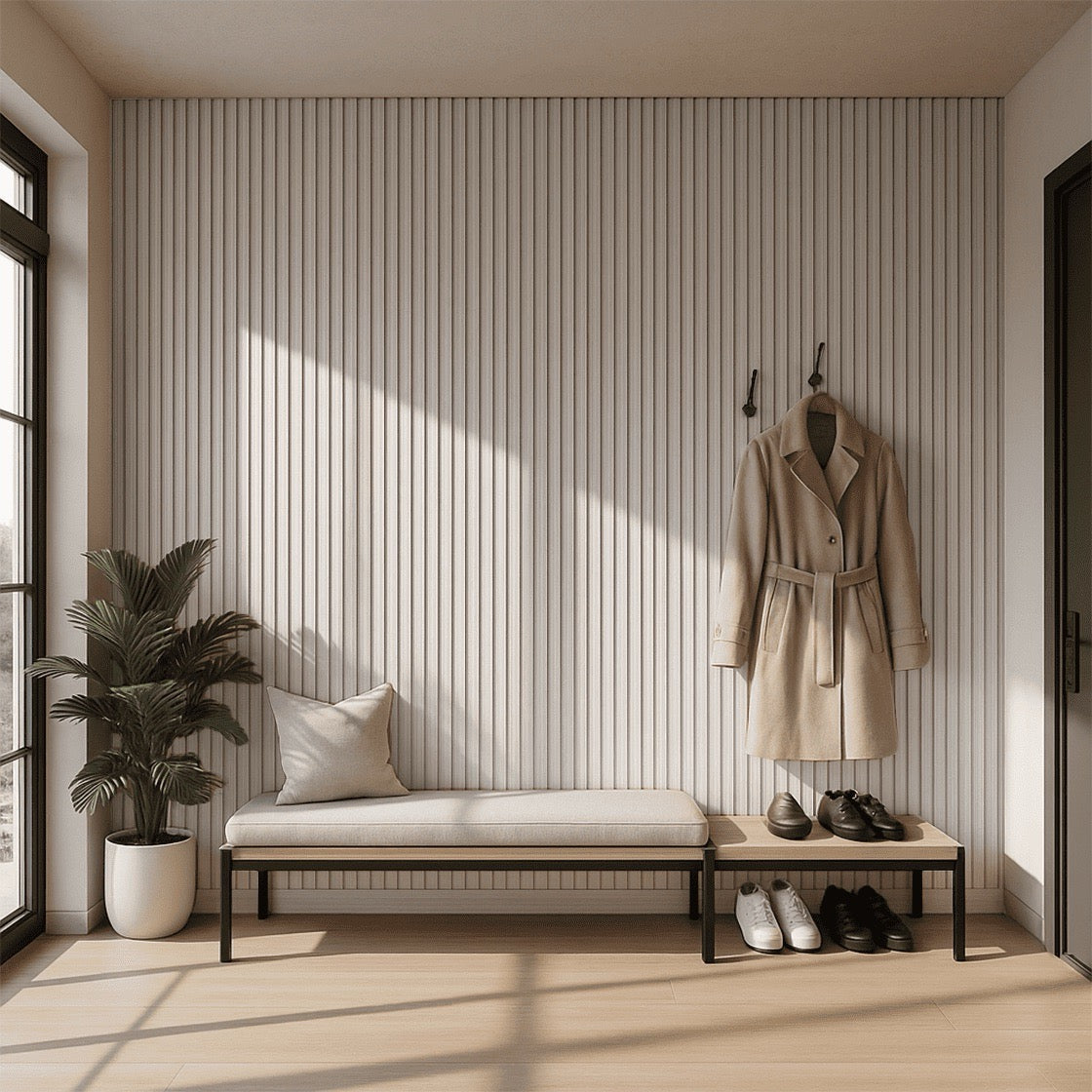 Transform your interior spaces with the Nroro Ivory Oak 62A slat panel from the Ridge5 Collection. These premium PVC wall and ceiling panels deliver authentic wood aesthetics without maintenance concerns. The elegant ivory oak finish complements modern and traditional designs alike, while the durable slat profile adds architectural depth and visual interest. Ideal for accent walls, ceilings, or complete room transformations, these panels resist moisture and fading—perfect for Hawaii's tropical climate. Easy to install and clean, they offer lasting beauty with minimal upkeep.