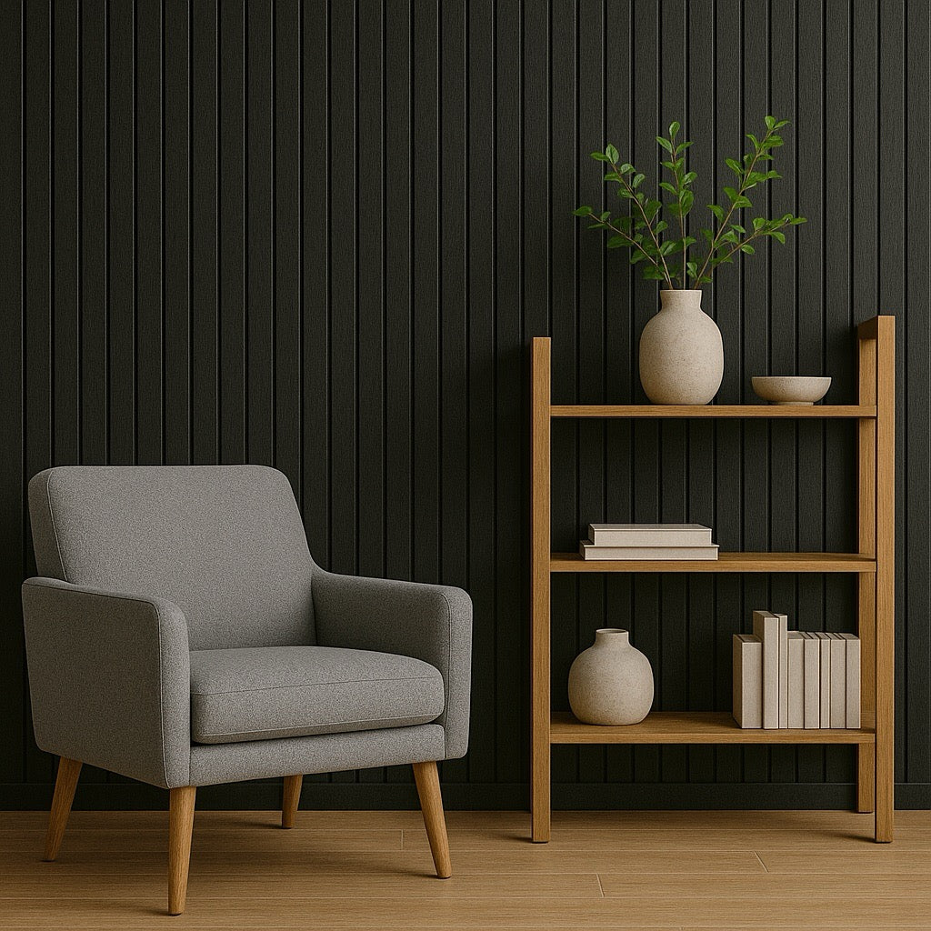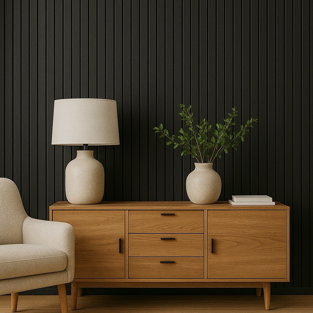 Nroro - Signature Pitch Black 84A - Ridge5 Collection - Slat Wall & Ceiling Panel - PVC Decor Accent