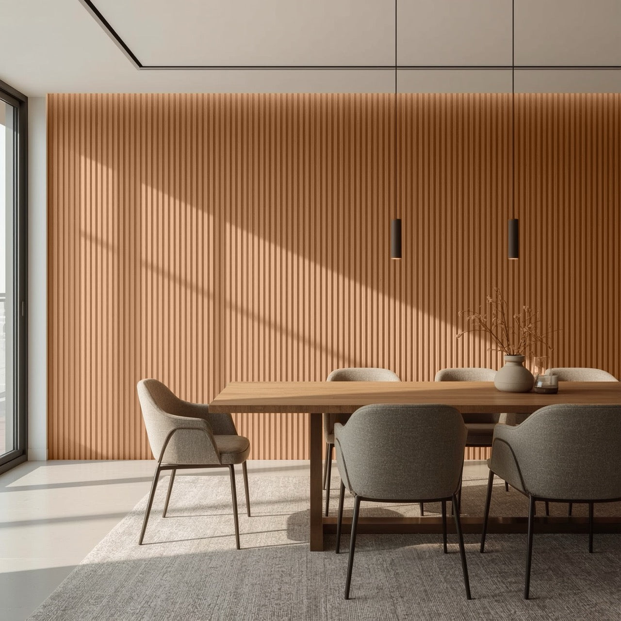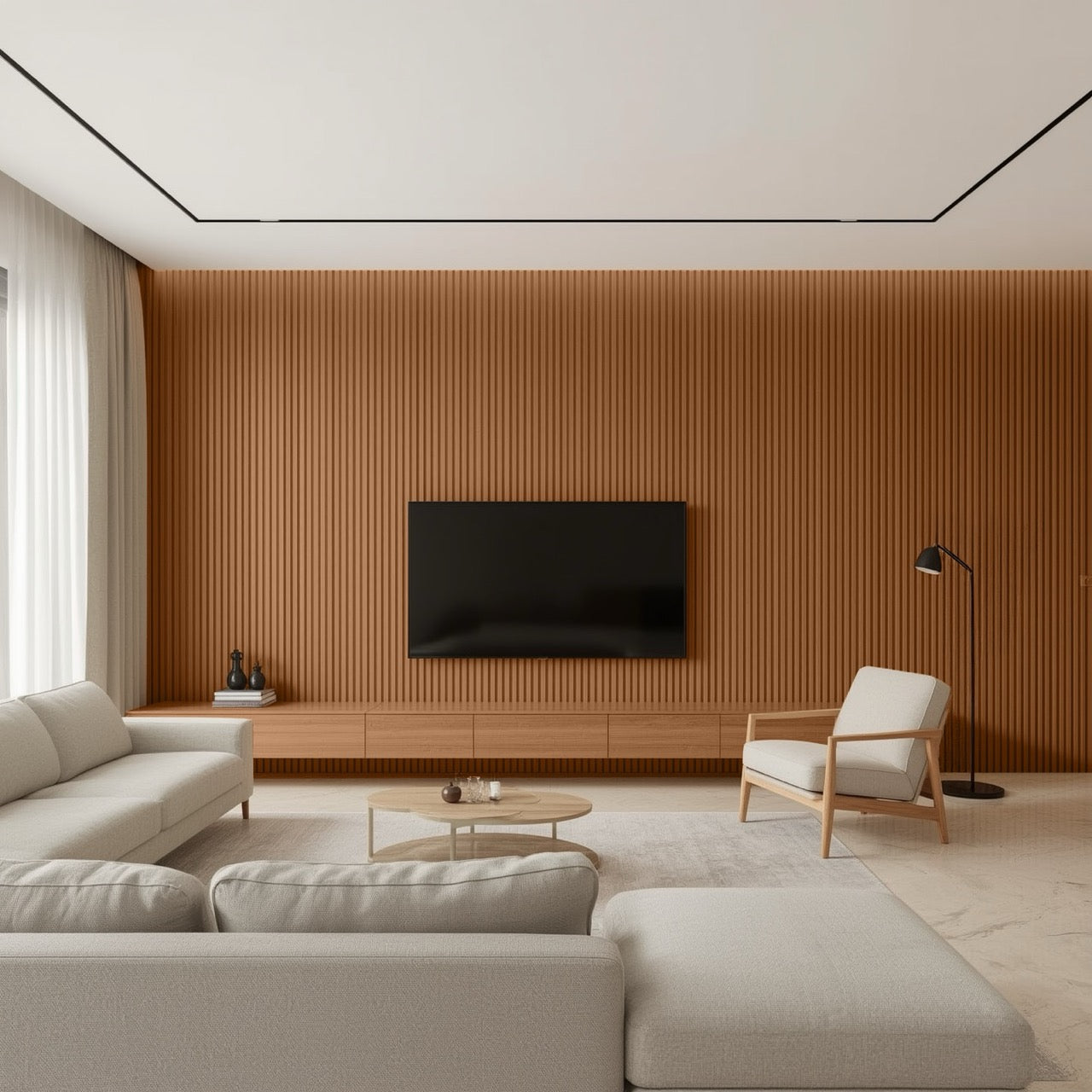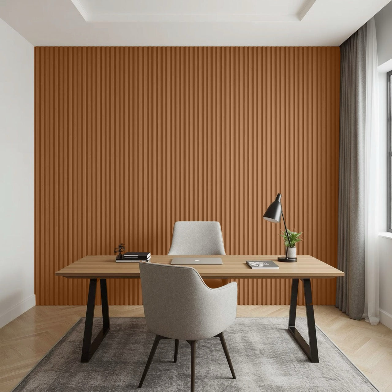Nroro's Toffee Walnut 26A slat panels from the Ridge5 Collection deliver sophisticated wood-grain aesthetics with modern versatility. These PVC decor accents feature durable construction suitable for walls and ceilings, offering easy installation and maintenance. The warm toffee walnut finish complements contemporary and transitional interiors while resisting moisture and wear. Ideal for accent walls, feature ceilings, or complete room transformations, these panels combine visual impact with practical performance for residential and commercial applications.