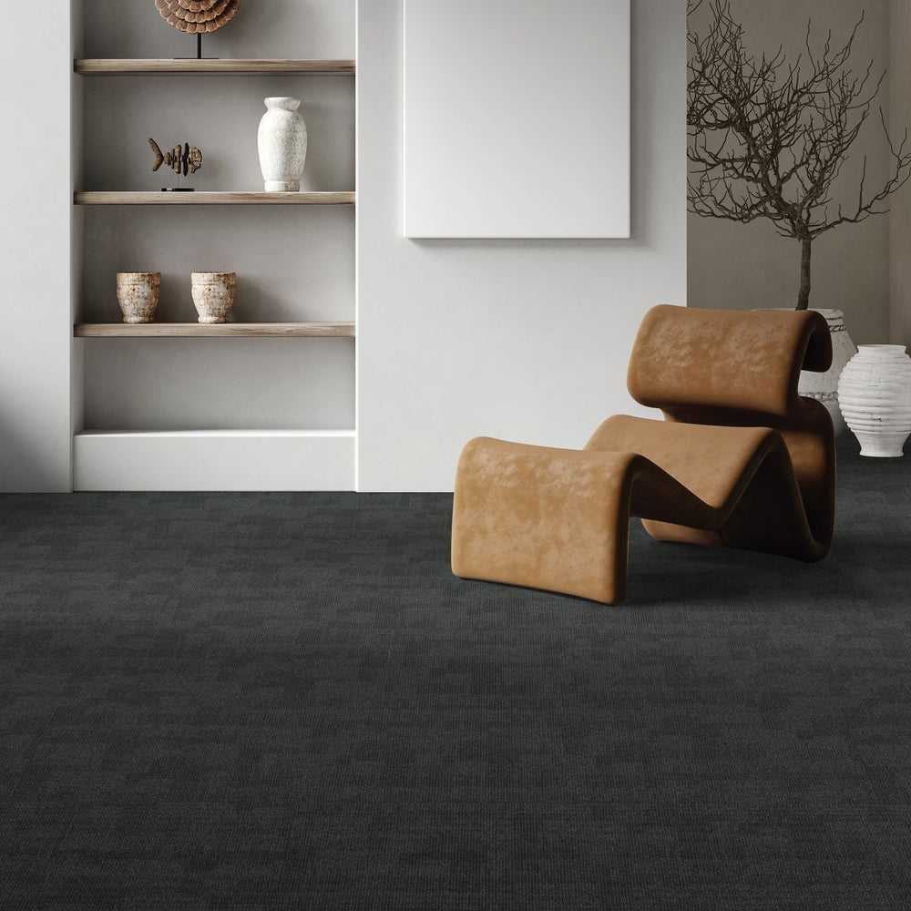 TAS Flooring Parkway Plaza in Raven is the go-to choice for retail entrances and high-traffic corridors where hiding dirt is the priority. This deep, dark charcoal carpet tile allows you to mask soil, coffee spills, and street dust better than lighter colors, extending the visual life of your floor. It provides a sharp, high-contrast look that anchors a room and defines walkways. Perfect for busy lobbies, hallways, and commercial entry points, Raven is the practical workhorse. It keeps your facility looking sharp and clean even on the busiest days.